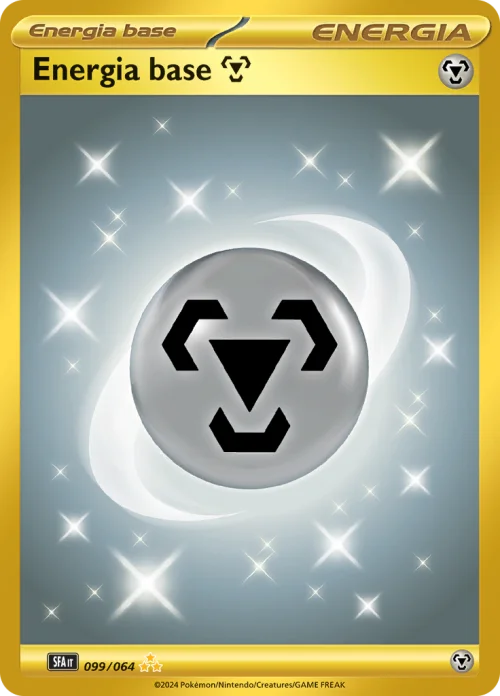 Carta Pokémon Energia Metallo SFA 099/095 in italiano dell'espansione Segreto Fiabesco. Energia Metallo è una carta allenatore Rara Segreta di tipo sconosciuto.